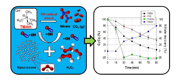 納米臭氧/ H2O2反應(yīng)產(chǎn)生了可除去TMAH的OH自由基。
