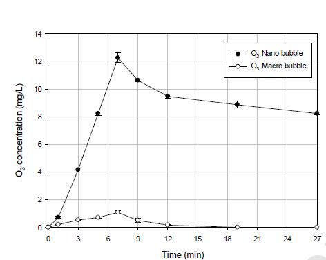使用納米臭氧時,氣體傳質(zhì)和臭氧氣體的半衰期增加了