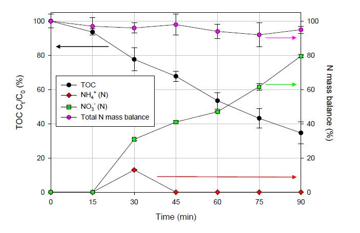 在90分鐘內(nèi),TMAH中80%的氮轉(zhuǎn)化為NO3。