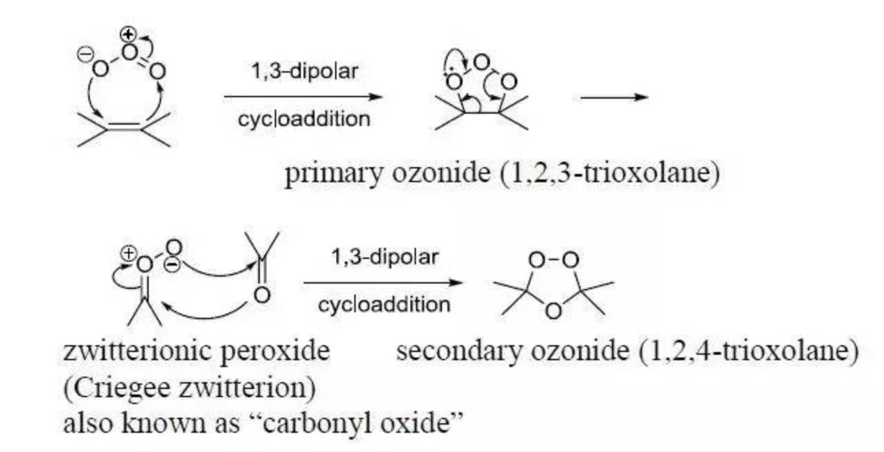 臭氧可以氧化很多有機物,盡管大部分有機物并不能徹底被氧化為CO2和H2O,它的理論當量可以通過化學反應式計算出。有個很著名的反應叫“Criegee臭氧化反應”(見百度百科),是臭氧氧化烯烴的反應: